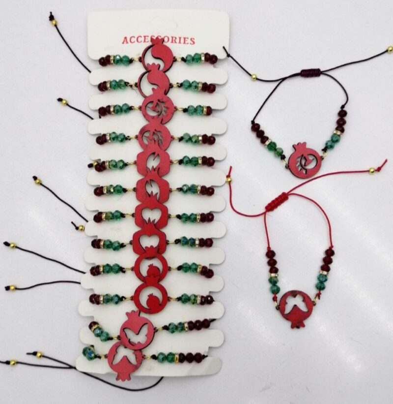 دستبند مهره کریستال وسط انار چوبی