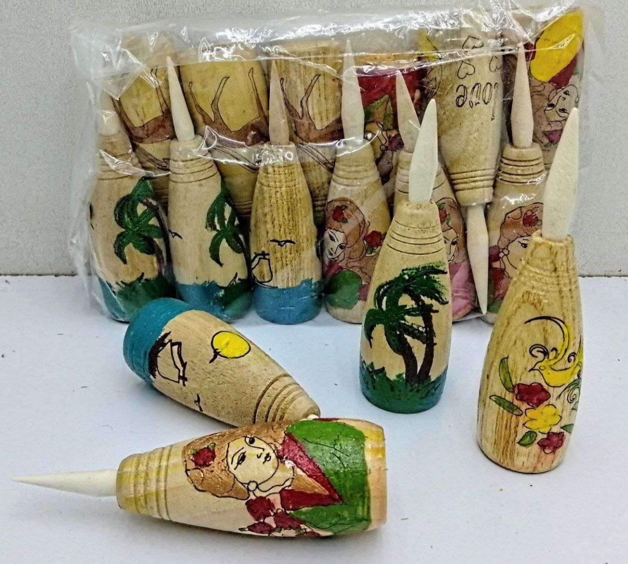 سرمه دان چوبی تراش خورده (12 عددی)
